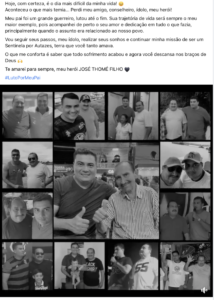 Thomé Neto, seu filho, publicou uma homenagem ao seu pai em suas redes sociais.