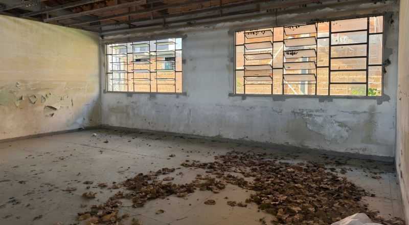 Dentro da escola, foram encontradas duas salas sendo utilizadas para armazenamento de materiais didáticos. Na primeira sala, identificou-se grande quantidade de materiais didáticos novos, a maioria com referência de utilização para o ano letivo de 2025, destinados à rede municipal de ensino, sendo a maior parte direcionada a escolas da zona rural do município. Na segunda sala, havia armazenamento de materiais didáticos antigos.