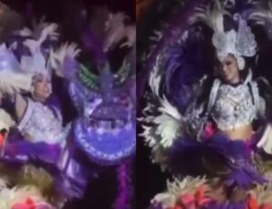 Amazonas - A porta-cores da Ciranda Flor Matizada, Thaísa Brasil, quase despencou de uma alegoria durante apresentação no Festival de…