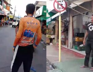 Motoqueiro de app se revolta e parte pra cima de homem por suposto calote em corrida no bairro Alvorada; veja vídeo
