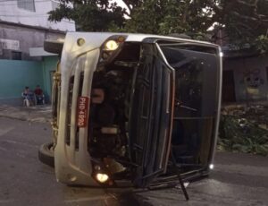 Manaus - Nesta sexta-feira (17), um ônibus tombou na rua H, bairro Nova Cidade, zona Norte da capital amazonense. De…