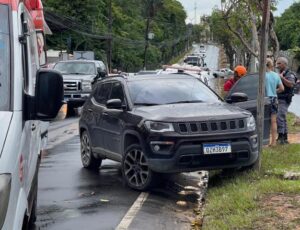 Urgente: idoso perde o controle de carro e destrói poste na av. do Turismo