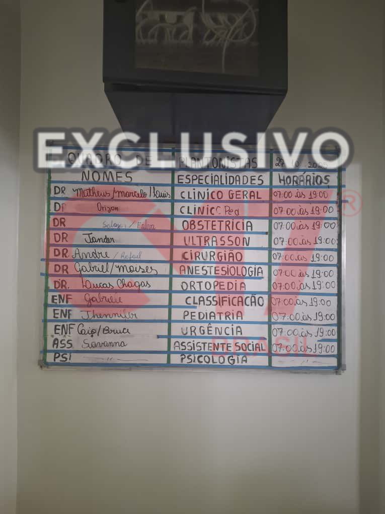 “Chegando lá, por volta de 11h30, 12h, constatei que o médico escalado para o plantão da ultrassonografia não estava no local. Quem atendia era um clínico geral, que disse ter trocado o plantão, apesar de já estar escalado para outro setor. Isso significa que estava acumulando duas funções. E as denúncias que recebi apontam que isso não é um caso isolado.”
