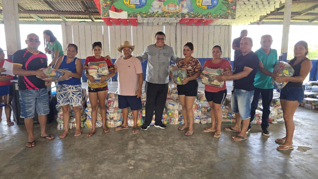 Amazonas – O prefeito de Barcelos, Radinho, realizou a ação Natal Sem Fome, que garantiu a entrega de mais de 5 mil cestas básicas para famílias em situação de vulnerabilidade social na sede do município e em todas as comunidades. A iniciativa contou com o apoio direto das Secretarias Municipais de Assistência Social e do Interior, que atuaram de forma integrada para assegurar que os alimentos chegassem a quem mais precisa.