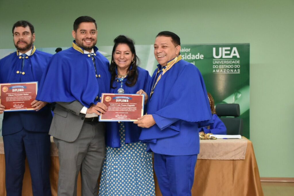 Amazonas – O reitor da Universidade do Estado do Amazonas (UEA), Prof. Dr. André Luiz Nunes Zogahib, e o pró-reitor de Pesquisa e Pós-graduação, Prof. Dr. Roberto Sanches Mubarac Sobrinho, tornaram-se imortais da Academia de Literatura, Arte e Cultura da Amazônia (Alaca). A cerimônia, que conferiu posse a outros seis membros, aconteceu no auditório da Reitoria da universidade, na manhã desta terça-feira (19/9).