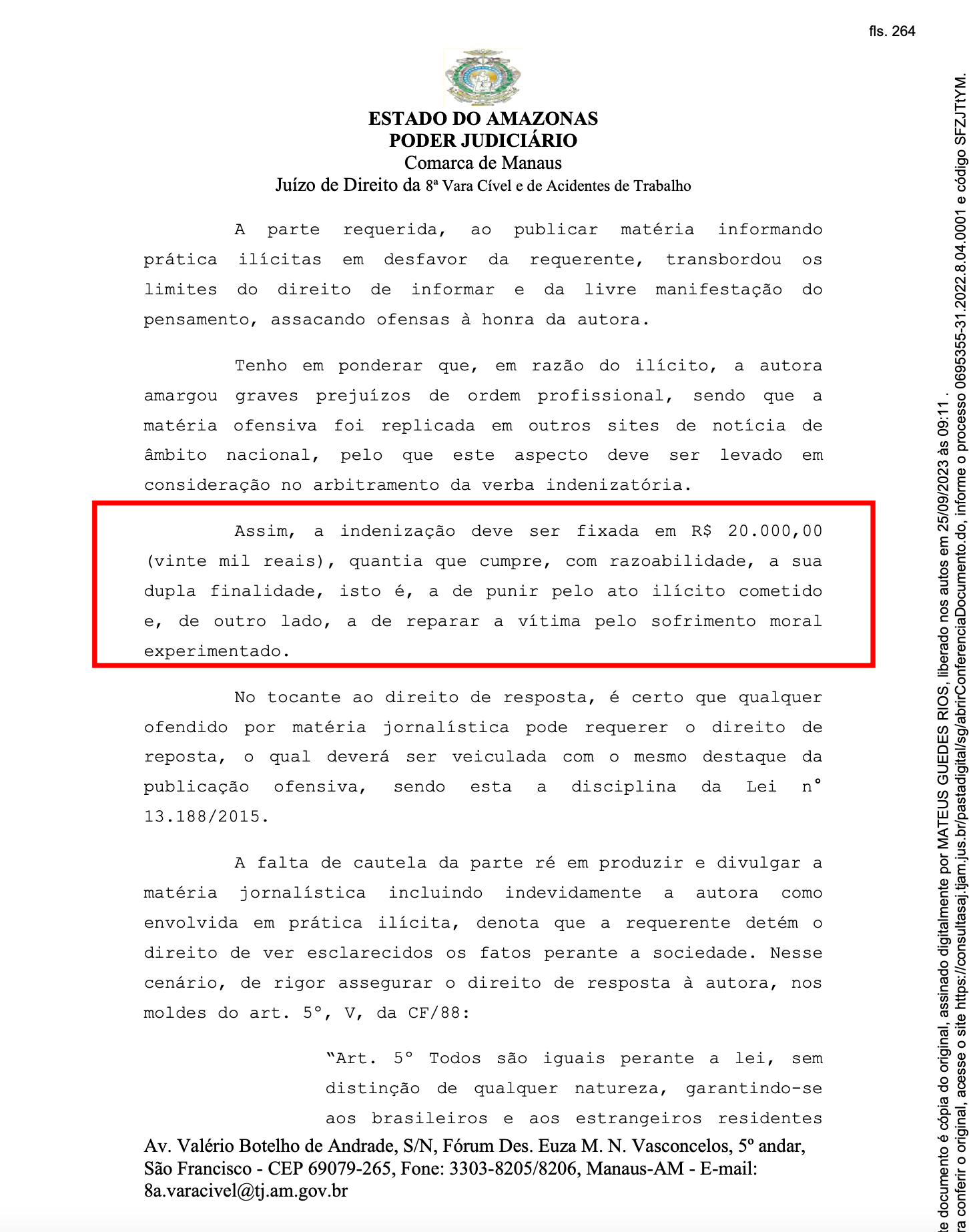 Manaus – A jornalista Paula Litaiff, editora-chefe da revista “Cenarium”, foi condenada a pagar uma indenização de R$ 20 mil por danos morais à advogada Ana Paula da Silva Bezerra. A condenação, mantida mesmo após recurso, resultou de uma série de acusações difamatórias e infundadas publicadas pela jornalista, que tiveram ampla repercussão, incluindo reprodução pelo portal UOL.