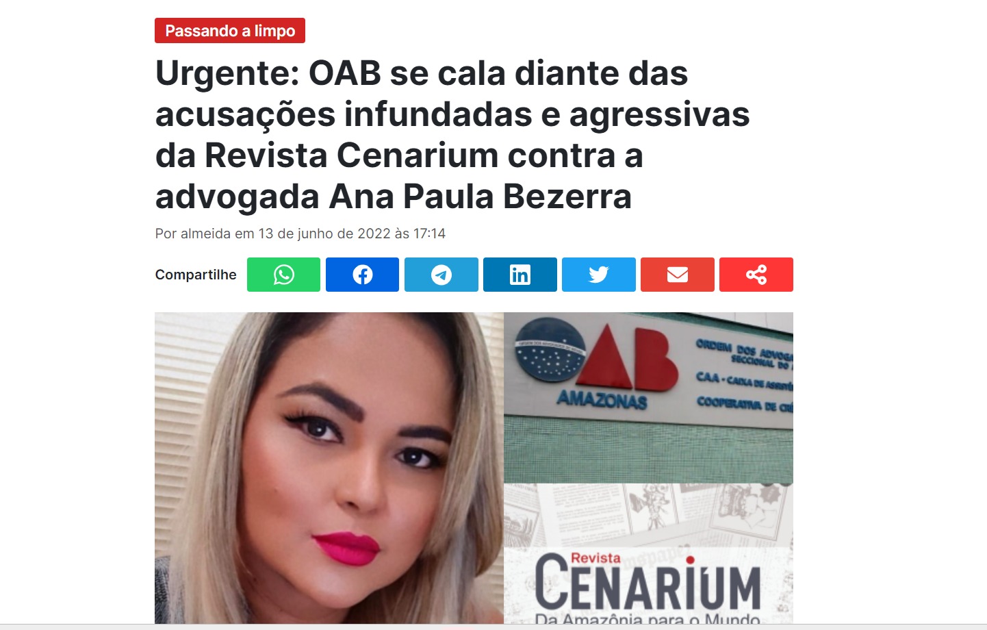 No dia 11 de junho de 2022, às 15h05, a advogada Ana Paula recebeu uma mensagem via WhatsApp de uma repórter da revista Cenarium, que trabalhava para Paula Litaiff, com o intuito de criar uma narrativa para difamá-la, insinuando que a advogada estaria envolvida em práticas fraudulentas e desvio ético-profissional, sem qualquer evidência que corroborasse tais alegações.