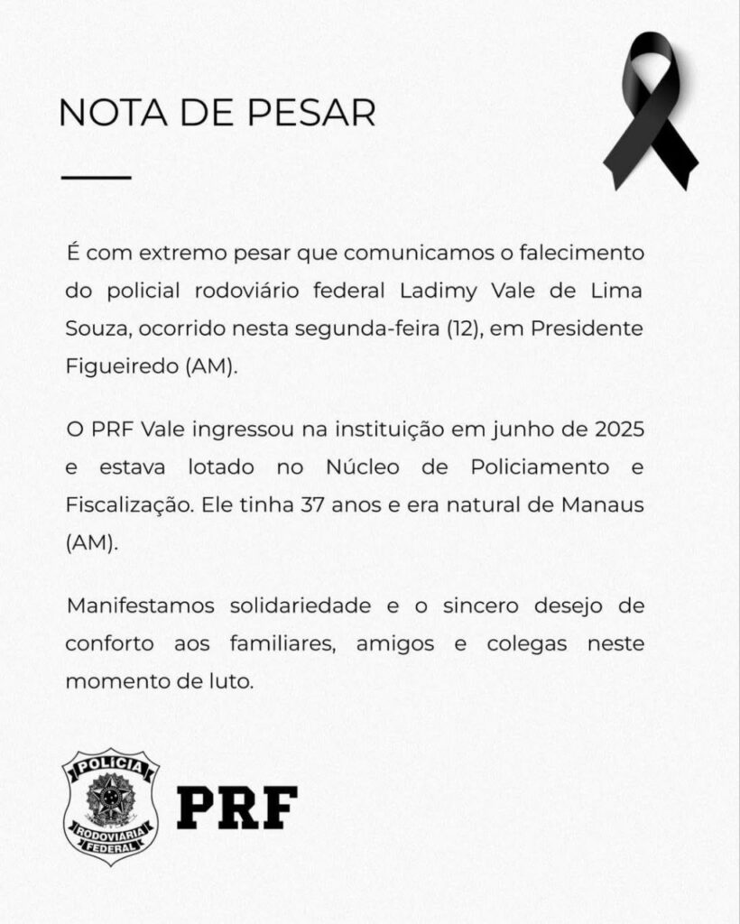 Aprovado no último concurso da Polícia Rodoviária Federal, ele foi empossado em junho de 2025 e estava lotado no Núcleo de Policiamento e Fiscalização da instituição no estado do Amazonas. Com apenas sete meses na corporação, o agente já se destacava pelo compromisso com o serviço público.