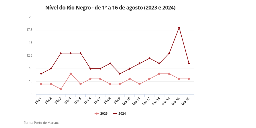Em Manaus, a última vez que as águas desceram foi em novembro do ano passado. Desde então, o Rio Negro tinha mantido um ritmo lento de subida. No entanto, desde o dia 17 de junho, o rio parou de encher.