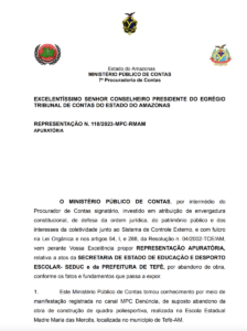 A representação aberta pelo Ministério Público de Contas do Amazonas reflete o compromisso com a fiscalização e a responsabilidade na gestão dos recursos públicos.