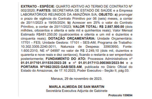 Não é a primeira vez que o laboratório Reunidos é beneficiado por contratos vultuosos do setor da Saúde. Em dezembro do ano passado, a Secretaria de Estado de Saúde do Amazonas (SES-AM) aprovou um reajuste de 25% em um contrato firmado com a empresa em 2020. O documento, identificado como 002/2020, refere-se a serviços laboratoriais prestados ao Hospital e Pronto Socorro Dr. João Lúcio Pereira Machado. O aumento no valor do contrato levanta ainda mais suspeitas, considerando o contexto de favorecimentos alegados.