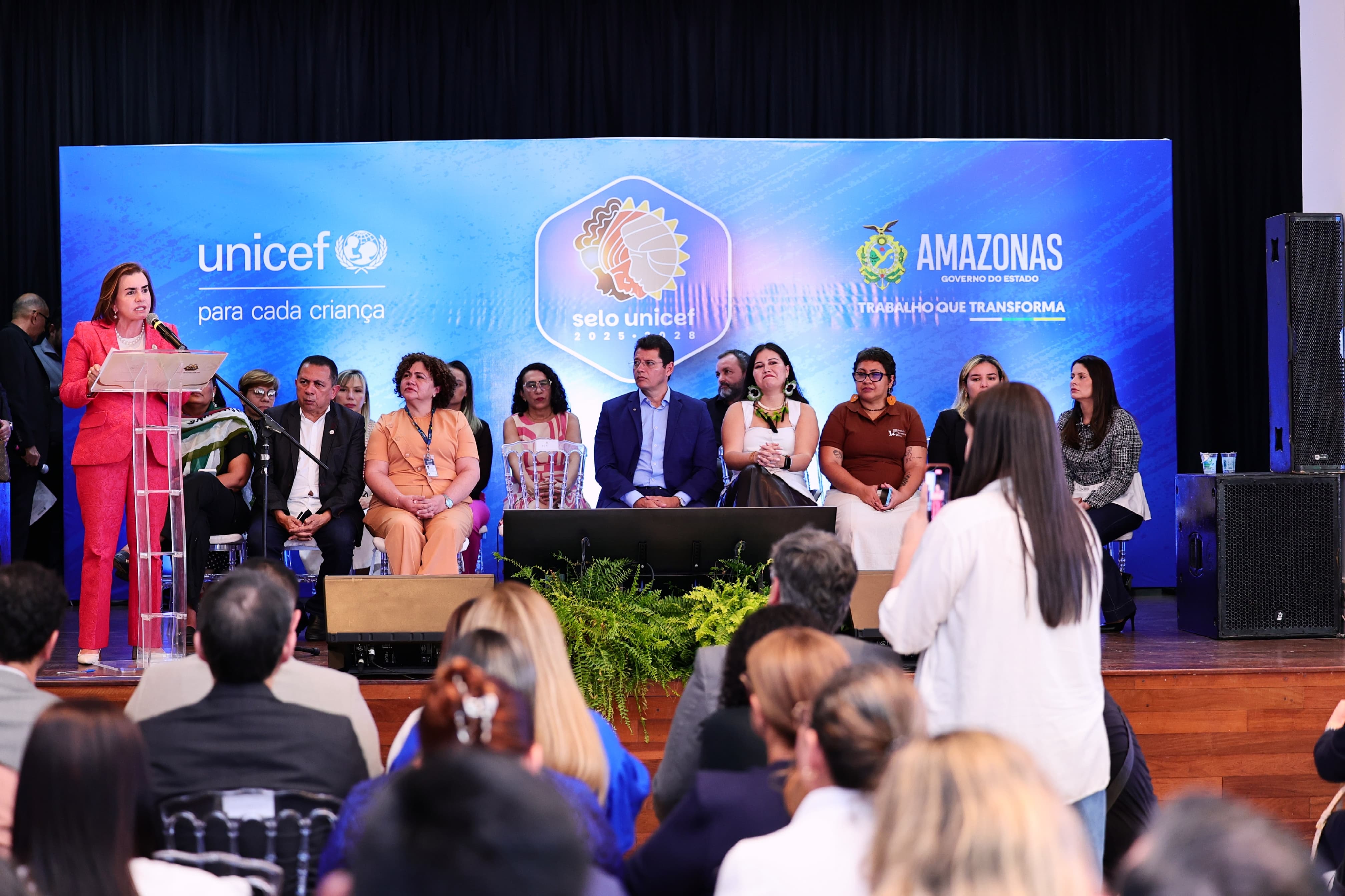 Promovido pelo Governo do Estado e pelo Fundo das Nações Unidas para a Infância (Unicef), o lançamento do Selo reuniu autoridades estaduais, prefeitos, lideranças comunitárias e representantes de órgãos parceiros. O Selo UNICEF é uma iniciativa que, há 25 anos, reconhece avanços positivos em políticas públicas voltadas à infância e adolescência nos municípios da Amazônia Legal e do Semiárido brasileiro. No Amazonas, a meta é alcançar a adesão dos 62 municípios ao novo ciclo, com foco em áreas como saúde mental, educação de qualidade, enfrentamento à violência e participação cidadã.
