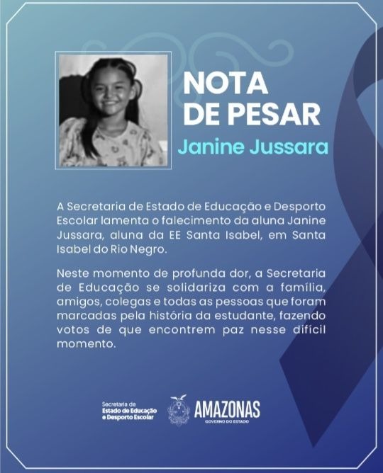 Amazonas – Uma tragédia marcou o fim da manhã desta quarta-feira (7) no município de Santa Isabel do Rio Negro, a cerca de 630 quilômetros de Manaus. A estudante Janine Jussara de Melo, de 9 anos, identificada como aluna da Escola Estadual Santa Isabel, morreu após ser atropelada por um ônibus escolar na saída das aulas.