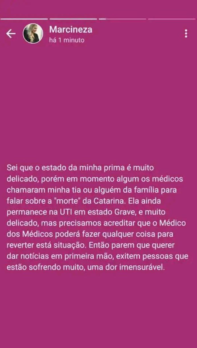 Nas redes sociais circula rumores de que a jovem teria ido a óbito, mas a informação foi negada pela família e agora pelo hospital.