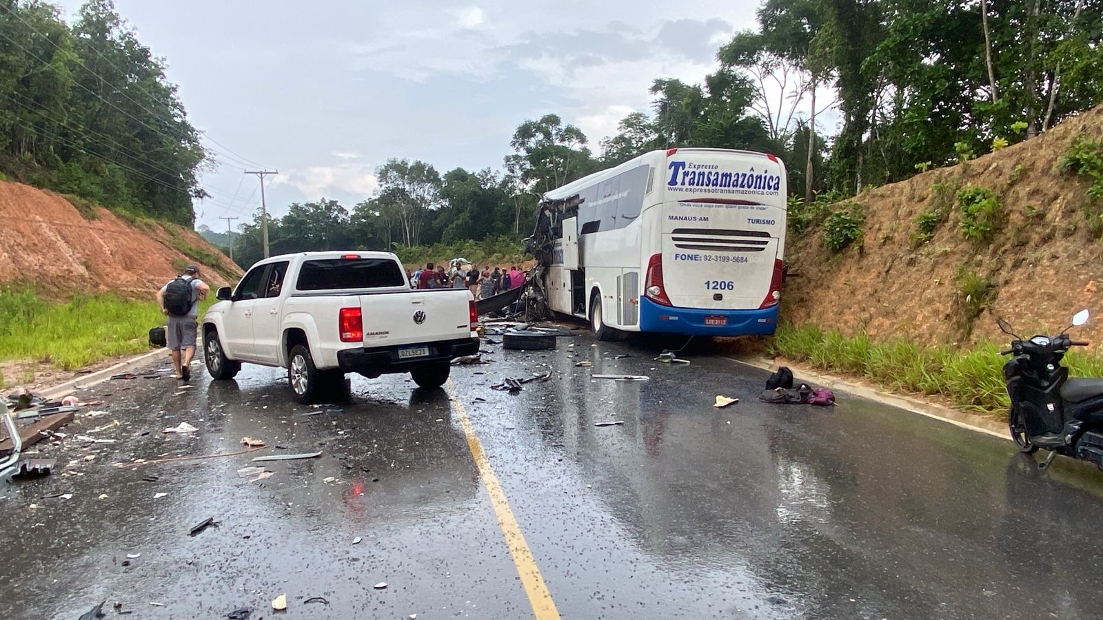 Amazonas – Nesta sexta-feira (20), um grave acidente envolvendo um ônibus de turismo e uma carreta deixou várias pessoas mortas e feridas no KM 135 da rodovia AM-010, que liga Manaus aos municípios de Rio Preto da Eva e Itacoatiara. O trágico acidente ocorreu por volta das 11:45, quando a região enfrentava uma forte chuva.