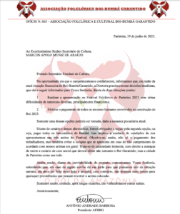 Amazonas – O presidente do Boi-Bumbá Garantido, Antônio Andrade Barbosa, enviou um comunicado à organização do Festival Folclórico de Parintins, ameaçando não levar o boi para a arena caso o Governo do Estado não auxilie a agremiação a resolver seus problemas financeiros nesta temporada.