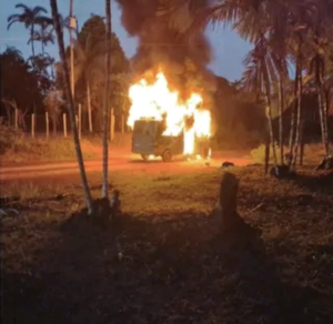 Amazonas – No fim da tarde dessa quinta-feira (04), uma van que transportava alunos da Comunidade do P.A Panelão para a Escola Thomé, pegou fogo.