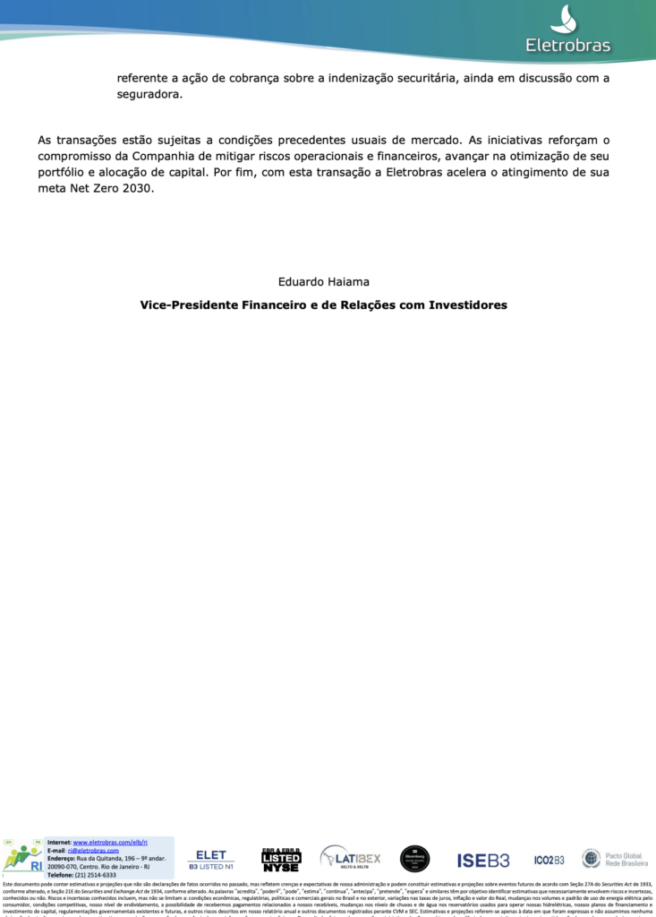 A distribuidora de gás do Amazonas também alertou sobre um passivo judicial bilionário envolvendo Eletrobras, Petrobras e Cigás, que pode dificultar a operação. Segundo estimativas, os litígios somam R$ 30 bilhões, com outros R$ 15 bilhões em disputas não judicializadas.