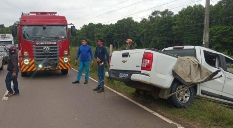 A picape, de placa PHD-2H43, sofreu danos significativos e parou fora do acostamento. Até o momento, as causas que levaram à perda de controle do veículo ainda estão sendo investigadas pelas autoridades de trânsito.