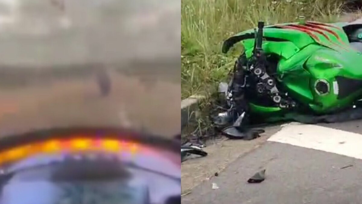 Através do painel da moto, é possível observar que a velocidade média se mantém e só cai quando a pessoa que grava percebe o acidente com os colegas.