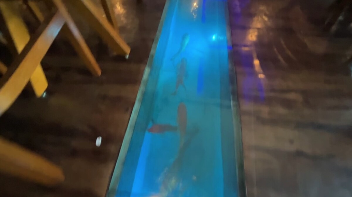 Desde sua inauguração em junho de 2021 o restaurante tem chamado a atenção pela sua arquitetura que celebra o ecossistema amazônico. Inspirada nos elementos do rio e do mar, a estrutura apresenta um piso de vidro que permite aos visitantes observarem carpas nadando, proporcionando uma imersão imediata na vida aquática da região. Além disso, esculturas de pirarucu e outros símbolos amazônicos decoram o ambiente, enaltecendo a cultura local. Mas certamente o que deixa todos impressionados, são os aquários muito bem alocadas na ambientação do restaurante, incluíndo o surpreendente piso em vidro que dá para ver os peixes nadando!