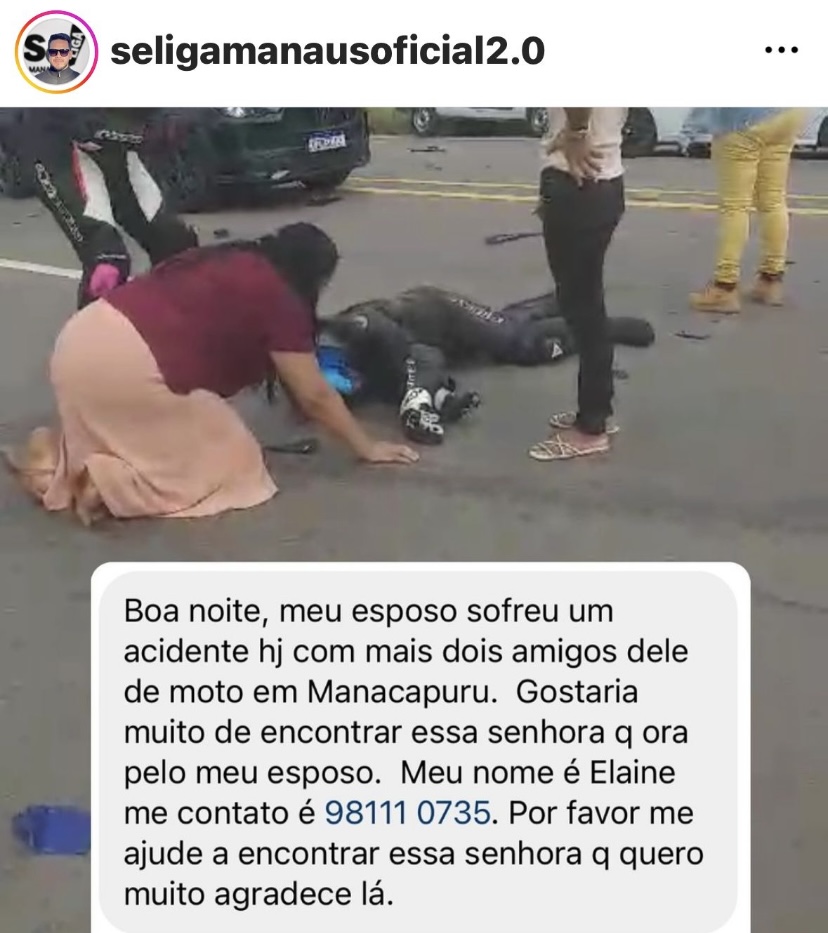 Elaine, a esposa da vítima fatal identificada como Rony, faz um apelo emocionado nas redes sociais para encontrar a mulher que ofereceu suas preces nos últimos momentos de vida do seu marido. O contato de Elaine é 98111 0735.