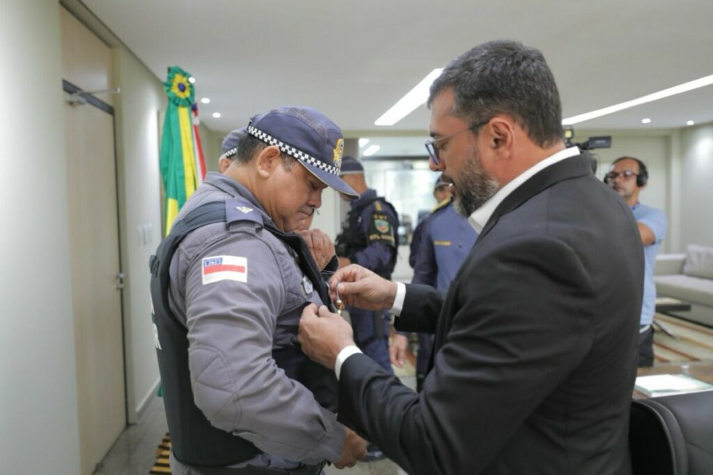 Wilson Lima parabeniza e concede medalha a PMs por maior apreensão de armas da história do AM
