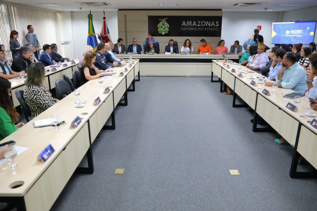 Na reunião, o governador Wilson Lima apresentou o trabalho executado pelo estado durante a seca severa e, especificamente, a ajuda enviada às comunidades indígenas. Além de medidas para ampliar o acesso à água potável por meio da Operação Estiagem, Wilson Lima também pontuou o planejamento para o combate às queimadas e colocou o Governo do Estado à disposição para atender as comunidades tradicionais.