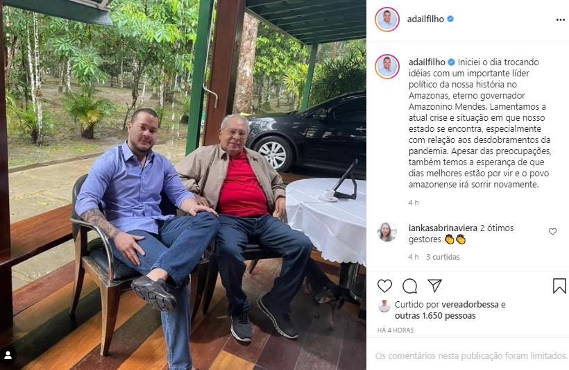 Durou exatos três meses o apoio de Adail Filho e Amazonino Mendes (Cidadania. Uma foto nas redes sociaisi do ex-prefeito de Coaria mostrava o encontro que ambos haviam tido. No dia 23 de junho, Adail publicou em suas redes sociais uma foto onde aparecia ao lado de Amazonino e o chamava de “eterno governador”.