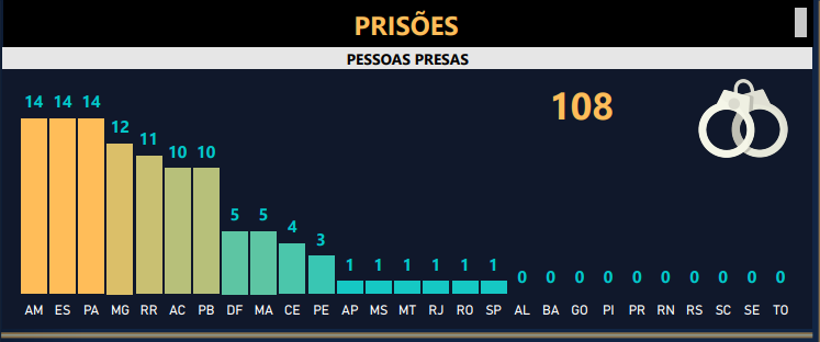 O Amazonas também lidera o número de prisões relacionadas a crimes eleitorais, com 14 casos. No Brasil todos são 108 prisões até o final da manhã
