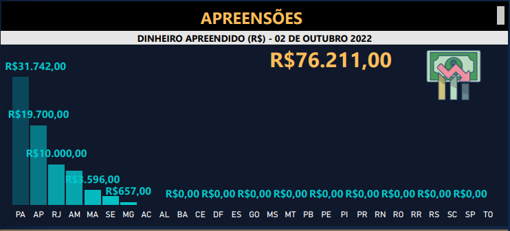 Os agentes de segurança pública que participam da Operação Eleições 2022 também já apreenderam no Amazonas R$ 3,5 mil. A suspeita é de que o recurso poderia servir para compra de votos. O Amazonas é o 4º estado onde mais se fez apreensão de dinheiro até o final da manhã deste domingo (2).