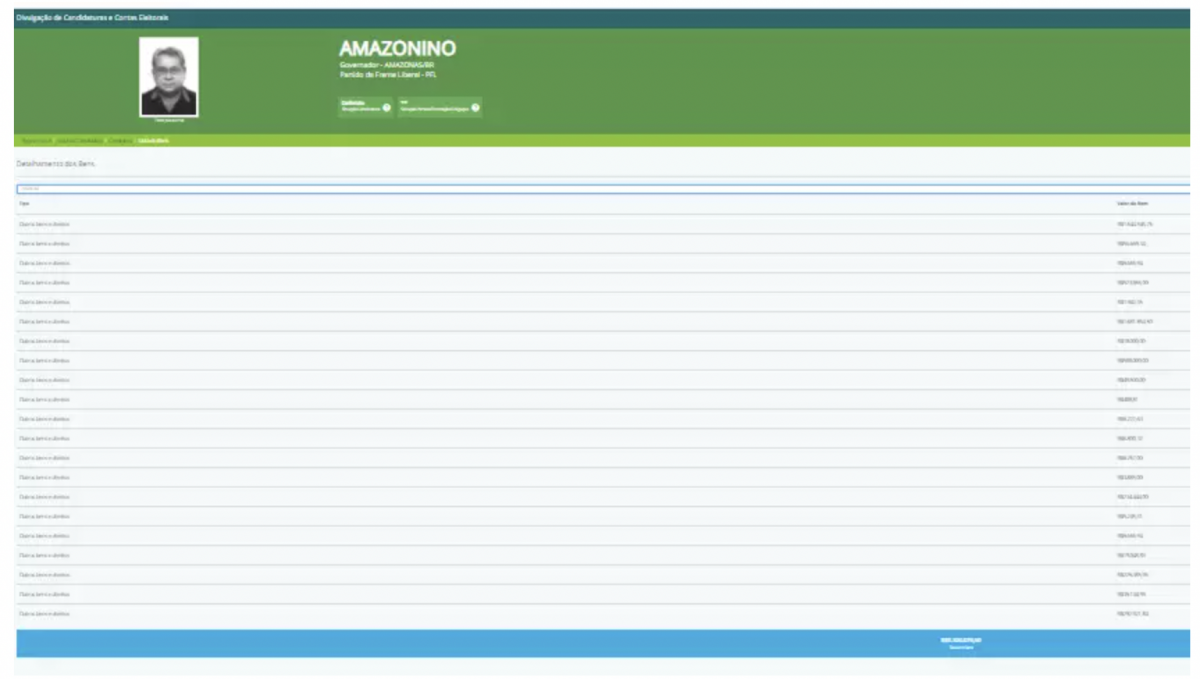 O valor declarado por Amazonino Mendes encolheu ao longo dos últimos 16 anos, de acordo com o DivulgaCand, sistema de registro de candidaturas e contas eleitorais do TSE, passando de R$ 5,32 milhões para os atuais R$ 3,9 milhões. Entre 2006 e 2022, Amazonino foi prefeito de Manaus (2009 a 2013) e governador do Amazonas (2017 a janeiro de 2019).
