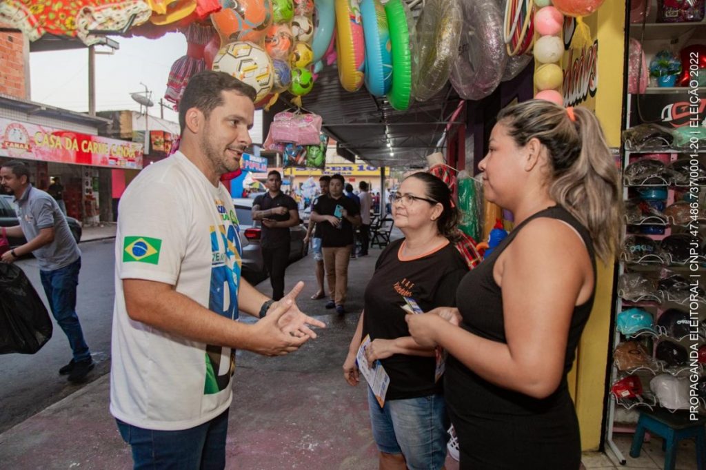 Durante a caminhada, Capitão Alberto Neto foi abordado por uma eleitora que afirmou ter votado nele em 2018 e que votará novamente este ano.