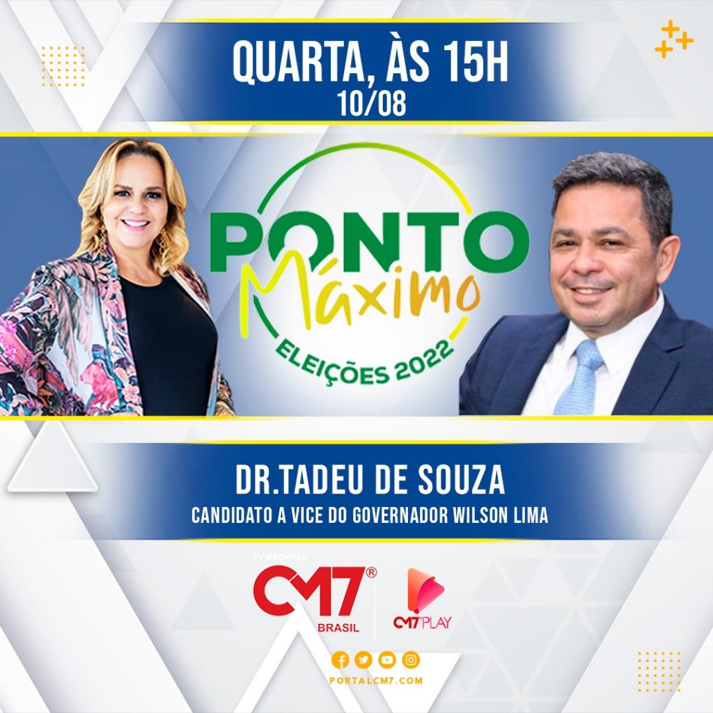 Manaus – Nesta quarta-feira (10), o programa Ponto Máximo com Cileide Moussallem tem como entrevistado especial o candidato a vice da chapa de Wilson Lima (UB) ao Governo do Estado, o procurador Dr. Tadeu de Souza (Avante).