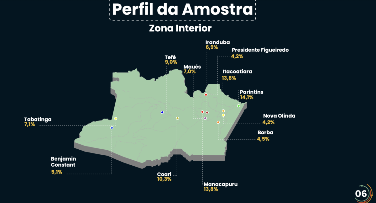 Os municípios inclusos na pesquisa são: Tabatinga, Benjamin Constant, Coari, Manacapuru, Borba, Nova Olinda, Parintins, Itacoatiara, Presidente Figueiredo, Iranduba, Maués e Tefé.
