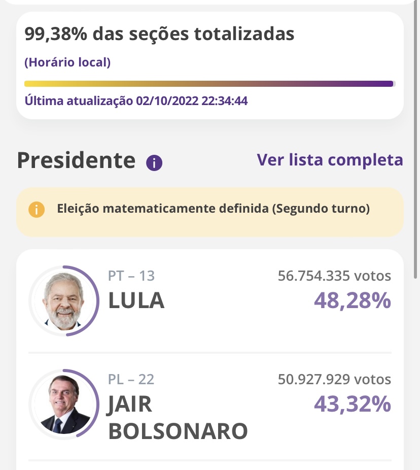 Brasil – Os brasileiros foram às urnas neste domingo (2), para decidir entre manter Jair Bolsonaro (PL) na Presidência da República ou eleger o ex-presidiário Luiz Inácio Lula da Silva (PT), no poder novamente.