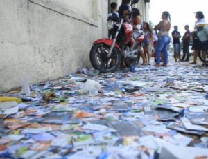 Manaus amanhece com as ruas cheias de ‘santinhos’ espalhados próximos a locais de votação
