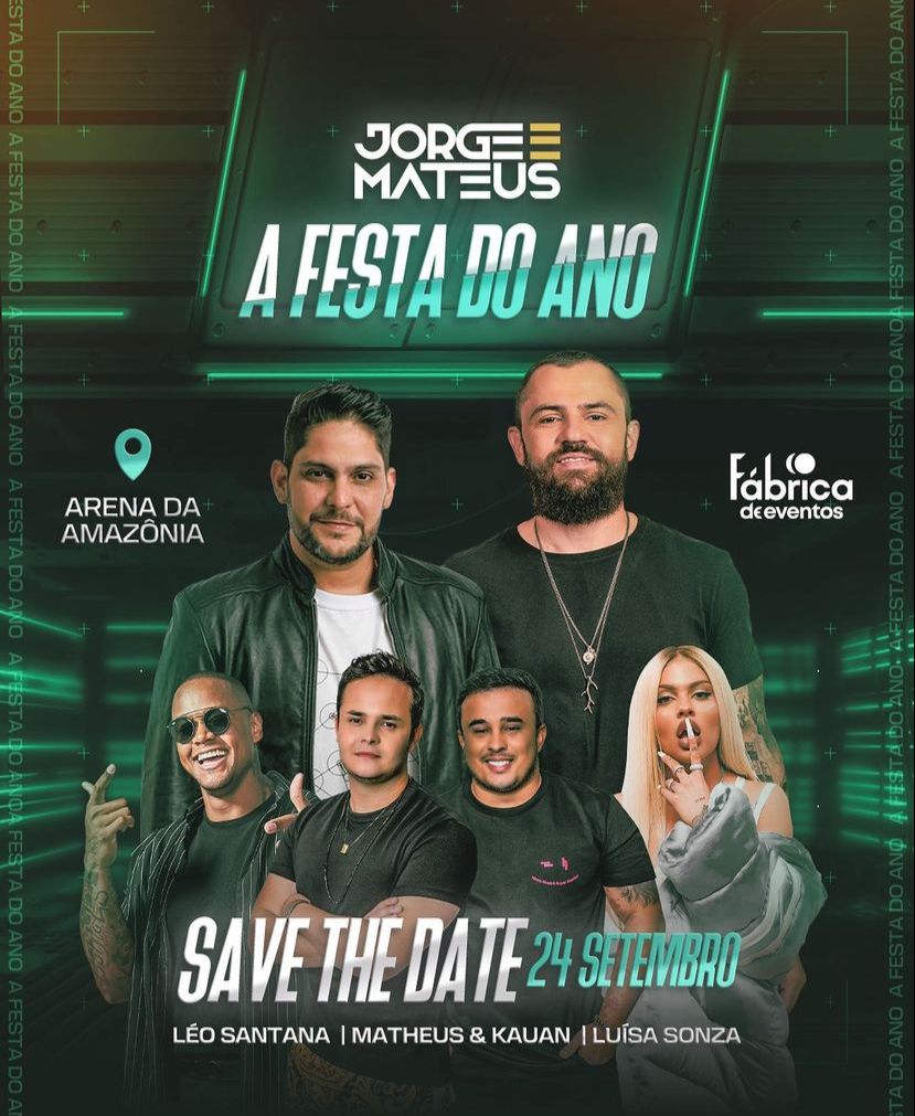 Além de Luísa, a ”Festa do Ano” realizada pela Fábrica de Eventos terá como atração principal a dupla Jorge e Mateus, além de outros artistas nacionais de sucesso como Léo Santana e Matheus e Kauan.