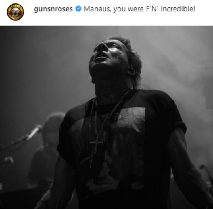 Após uma semana do show, Guns N’Roses ainda exalta Manaus nas redes sociais: “Vocês são incríveis!”