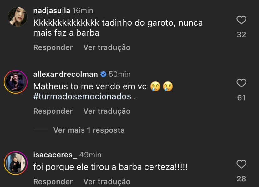 Nas redes sociais, os internautas não se conterem e apontaram que o motivo do término repentino teria sido o novo visual de Matteus. Já que o brother era conhecido por sua bela barba, e resolveu raspar tudo.