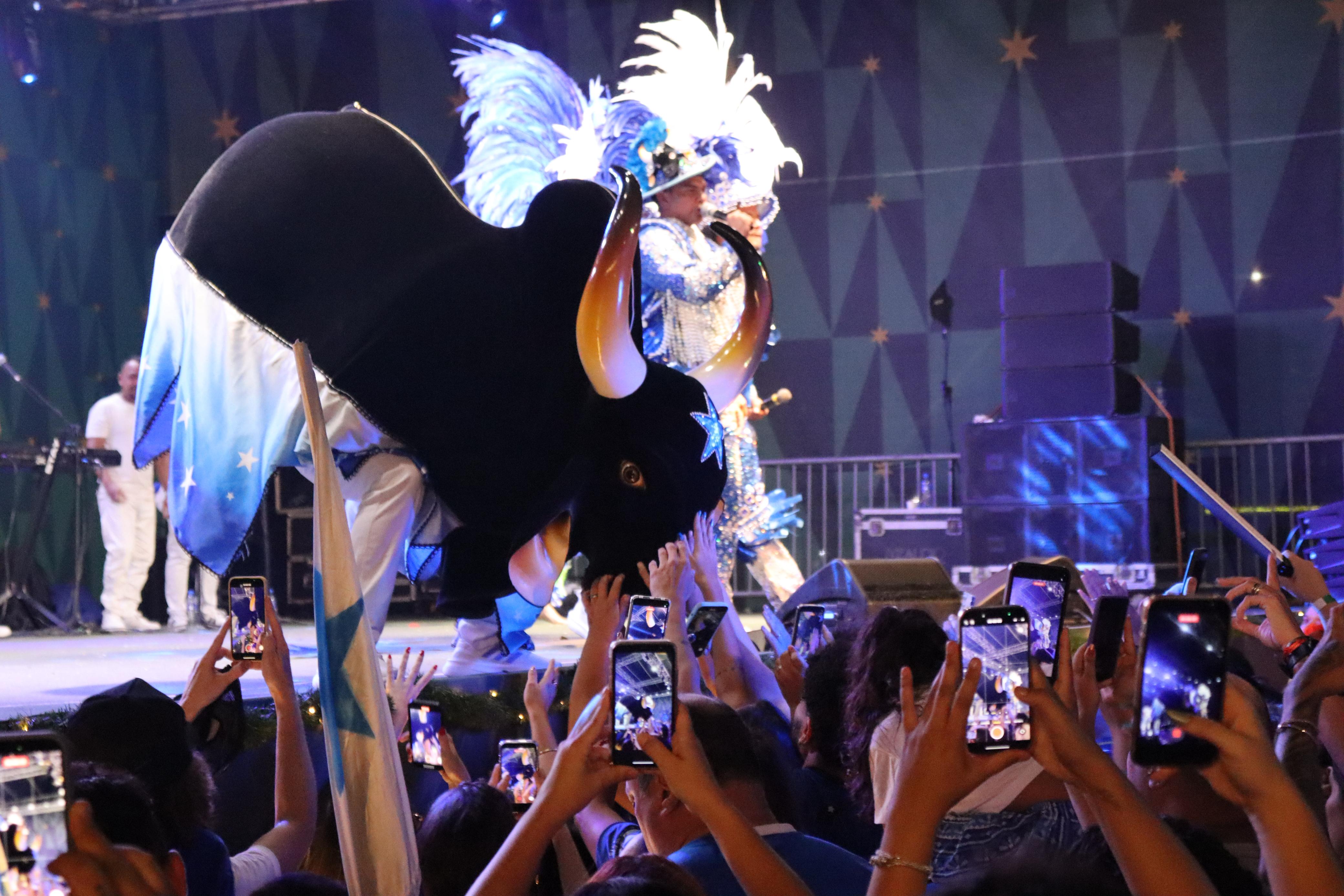 No palco, itens oficiais do boi deram vida a um recorte da cultura amazônica, com toadas, coreografias e elementos cênicos adaptados ao espaço do evento. Durante o momento simbólico do acendimento da árvore, a porta-estandarte Marcela Marialva participou da cerimônia, representando as cores azul e branco em um dos pontos altos da noite.