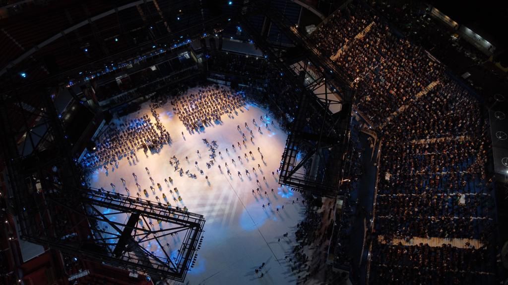 Amazonas – Na noite desta terça-feira (21), o boi-bumbá Caprichoso lotou a arquibancada azul e branca do Centro Cultural Bumbódromo. O touro negro levou para arena os itens oficiais durante a passagem de som.