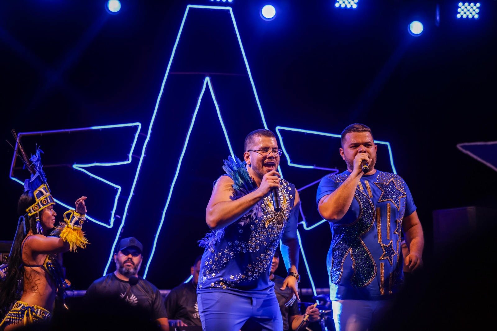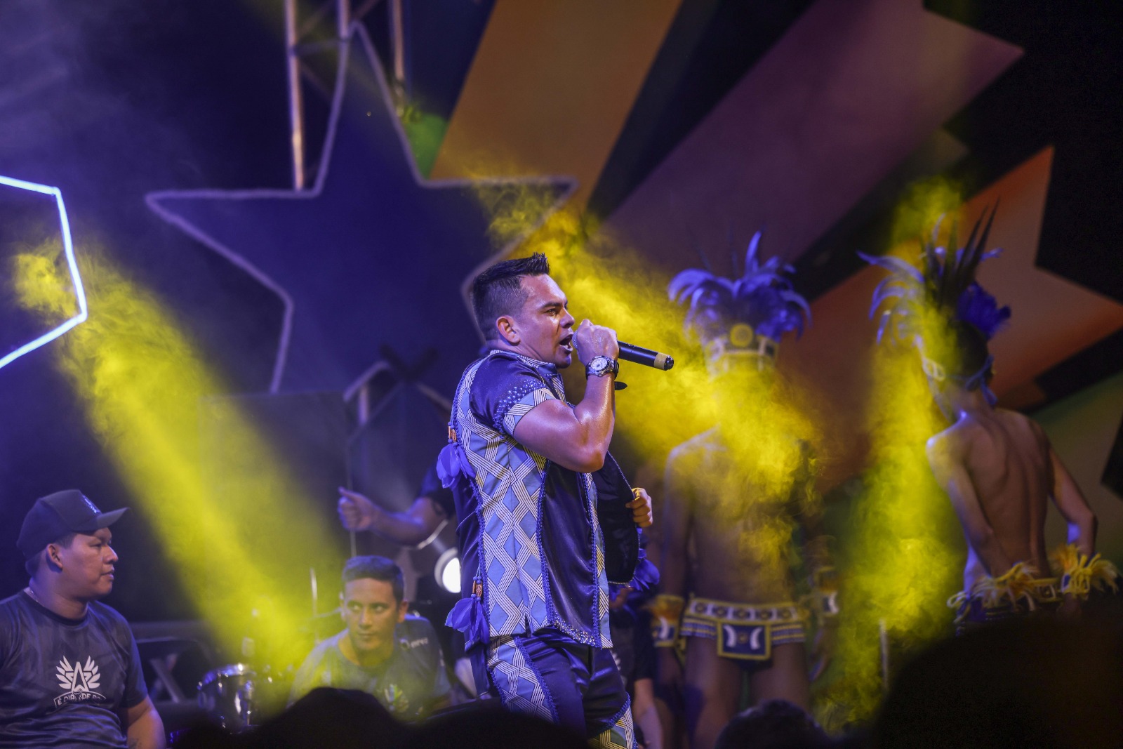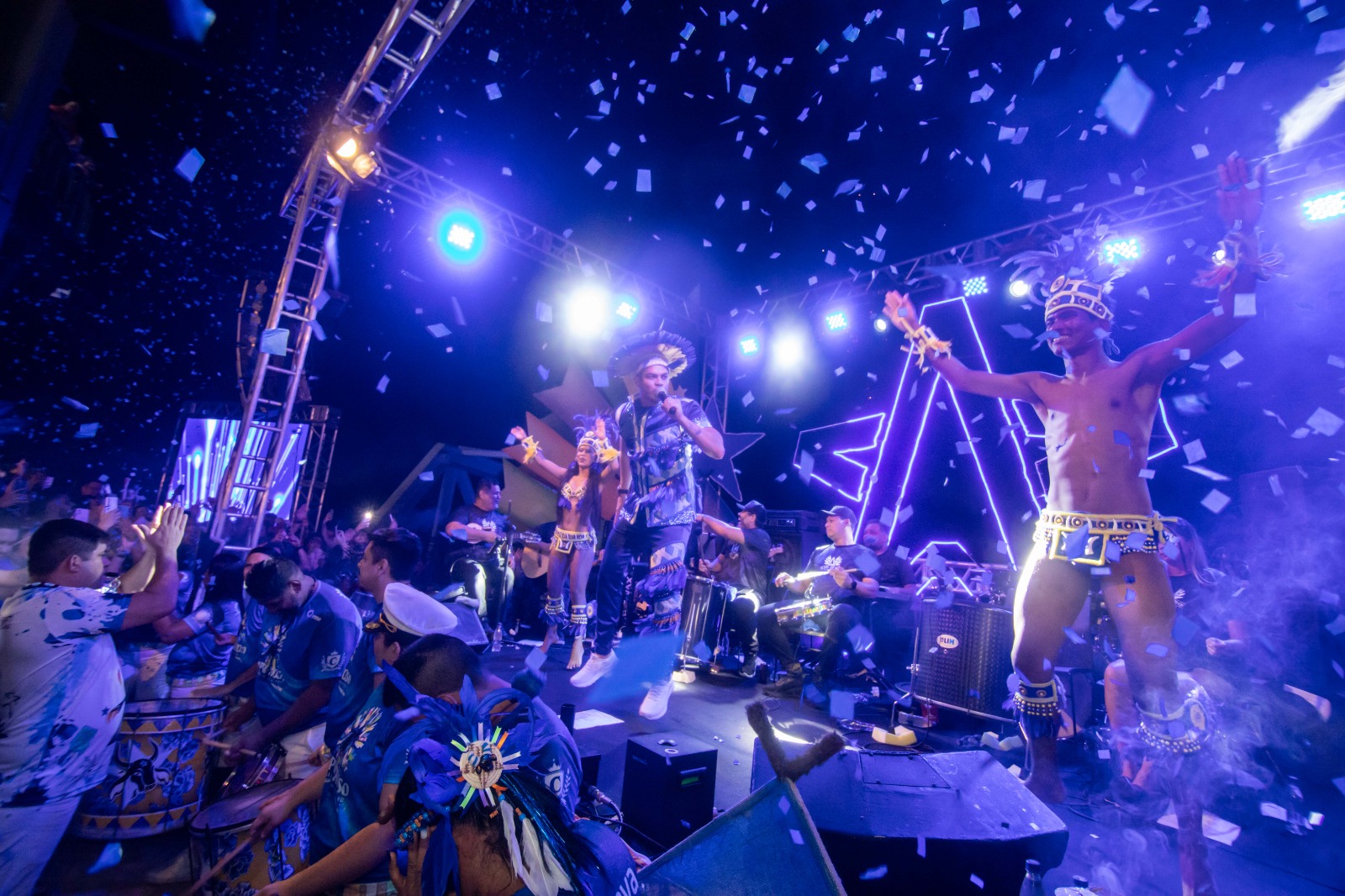 Entre as atrações que animaram o público estavam Edmundo Oran, Edilson Santana, Klinger Jr, Arlindo Neto, Diego Brelaz e o grupo Canto da Mata, que colocou todo mundo para dançar com seu repertório carregado de sucessos. A Marujada de Guerra, ícone oficial do Festival de Parintins, também esteve presente, trazendo ainda mais emoção e alegria aos torcedores azulados.