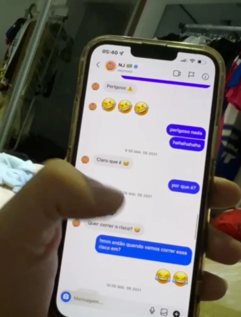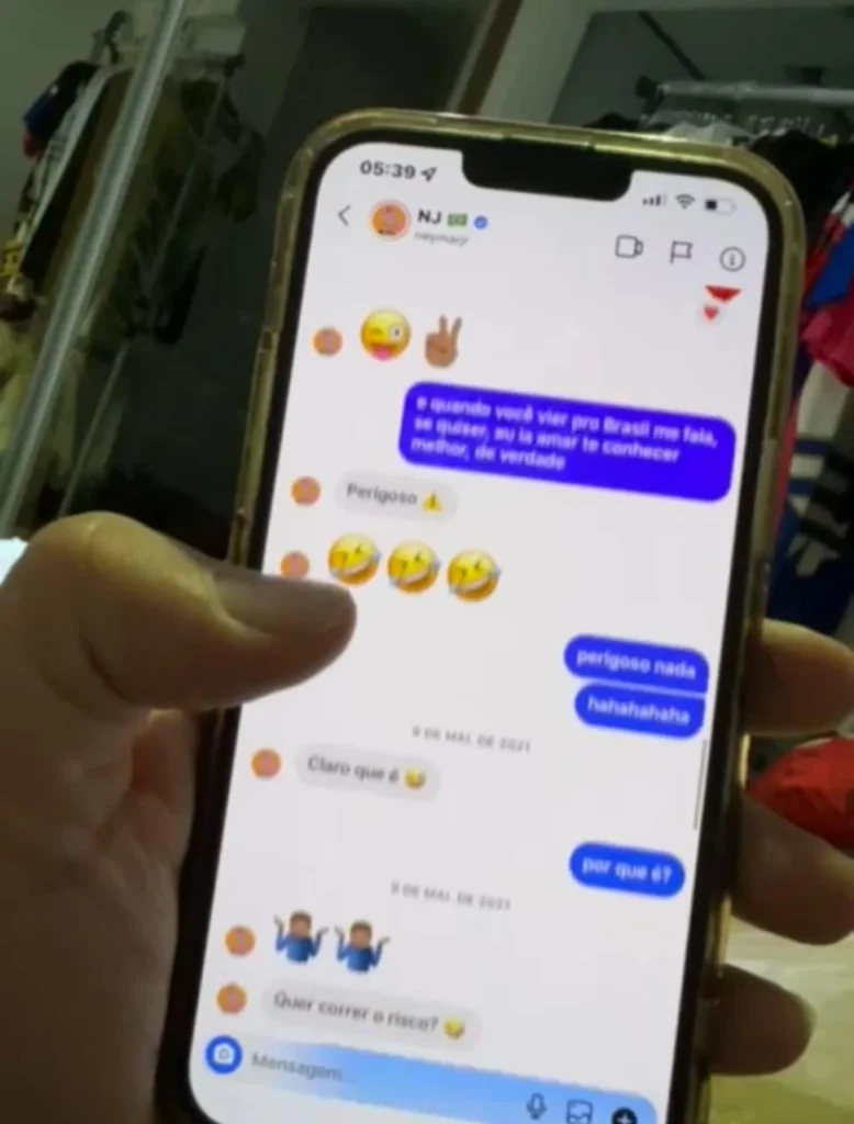 Mas Bia mostra que não quer finalizar: “Quando você vier para o Brasil, me fala. Se quiser, eu ia amar te conhecer melhor, de verdade”. Ao notar que a influenciadora está com segundas intenções, Neymar responde: “Perigo”. Bia reage: “Perigoso nada hahaha”. Porém, Neymar insiste com um “claro que é” e a influenciadora pergunta o por quê.