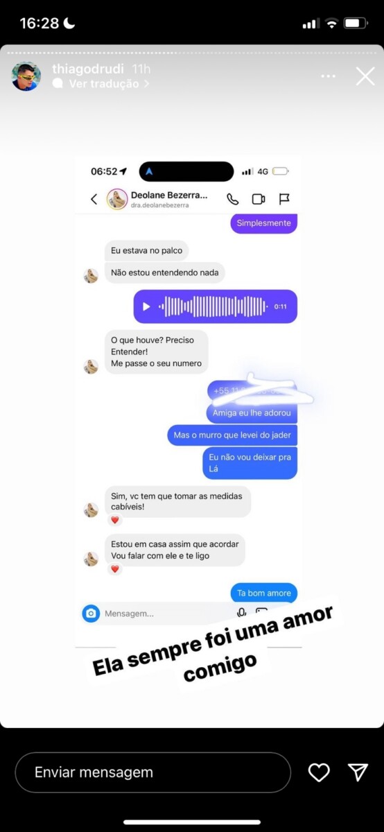 Deolane ficou sabendo do que seu segurança fez e disse para Thiago que iria conversar com ele. O influenciador registrou um boletim de ocorrência sobre o caso.