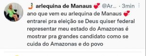 Famosos – A digital influencer Dandara Pantoja, mais conhecida como “Alerquina de Manaus”, anunciou em uma publicação nas redes sociais que pretende se candidatar para o cargo de Deputada Federal.
