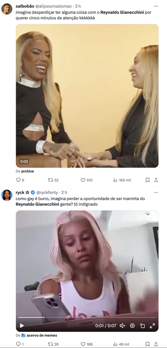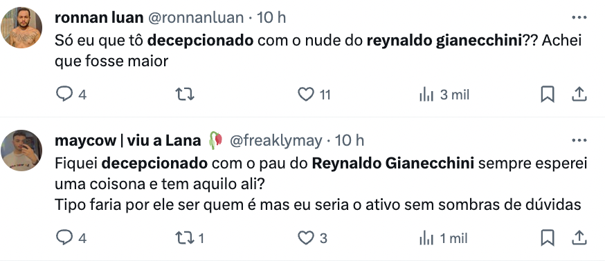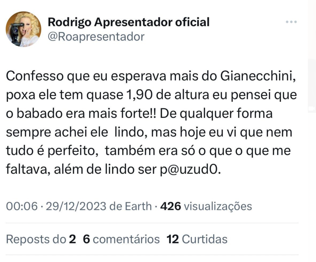 No X, o antigo Twitter, o vídeo foi compartilhado por muitos internautas e nome do ator ficou em segundo lugar entre os assuntos mais comentados. Até o momento, o Gianecchini não se manifestou sobre o ocorrido.