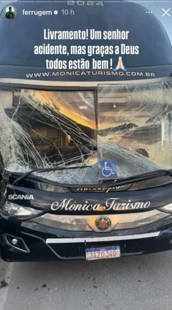 Brasil – O cantor Ferrugem e sua equipe sofreram um acidente de ônibus em Guaíba, no Rio Grande do Sul. Tanto o artista quanto a empresa de turismo envolvida se manifestaram sobre o ocorrido.