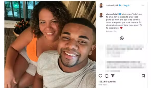 Antes da publicação de Davi, a vendedora autônoma pediu compreensão pelo silêncio nas últimas 48 horas e explicou o que sentiu. Ela também parou de seguir o ex-motorista de transporte por aplicativo no Instagram.