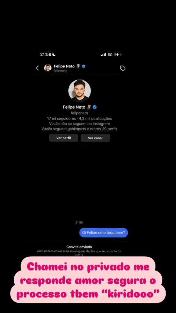 A advogada foi além e mostrou que já havia enviado uma mensagem privada ao youtuber, exigindo uma resposta: “Chamei no privado. Me responde, amor, segura o processo também ‘kirido’”. Ela ainda questionou por que outros influenciadores que promovem as mesmas empresas não estão sendo investigados.